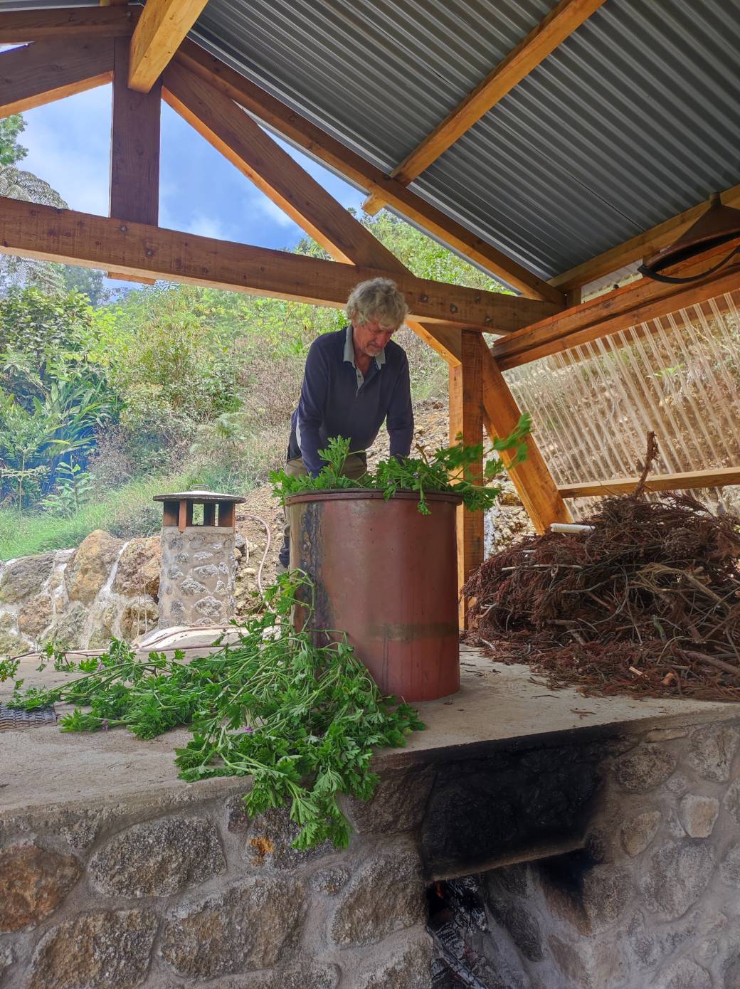 2. Puis nous récolterons la plante que nous mettrons dans l'alambic afin d'assister à une distillation et en comprendre tous les secrets : par exemple, pourquoi la Réunion de la grande époque, forte de 2000 alambics, leader mondial sur le géranium et le vétiver, ne commercialisait elle pas les hydrolats ?