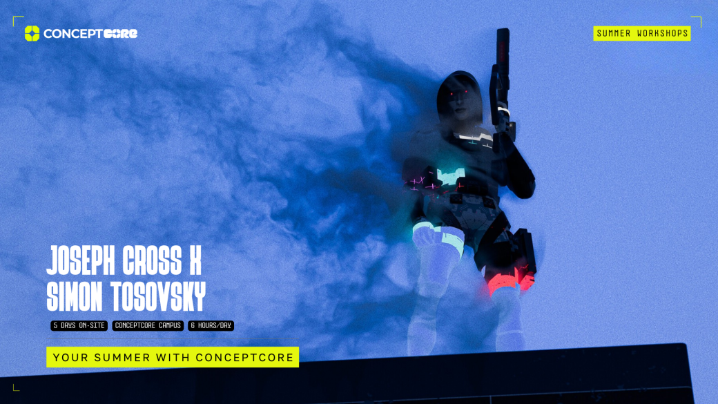 Over 5 days, you'll build your own world from the ground up , drawing directly from Joseph's process on Marathon, Destiny, Dune, Dead Space, and Foundation. Joseph and Simon specialise in character-driven worldbuilding: the factions, silhouettes, uniforms, and equipment that make a universe feel real and inhabited. You'll leave with a personal world project anchored by its core characters and visual language, developed with daily feedback from artists who shaped Marathon at Bungie.