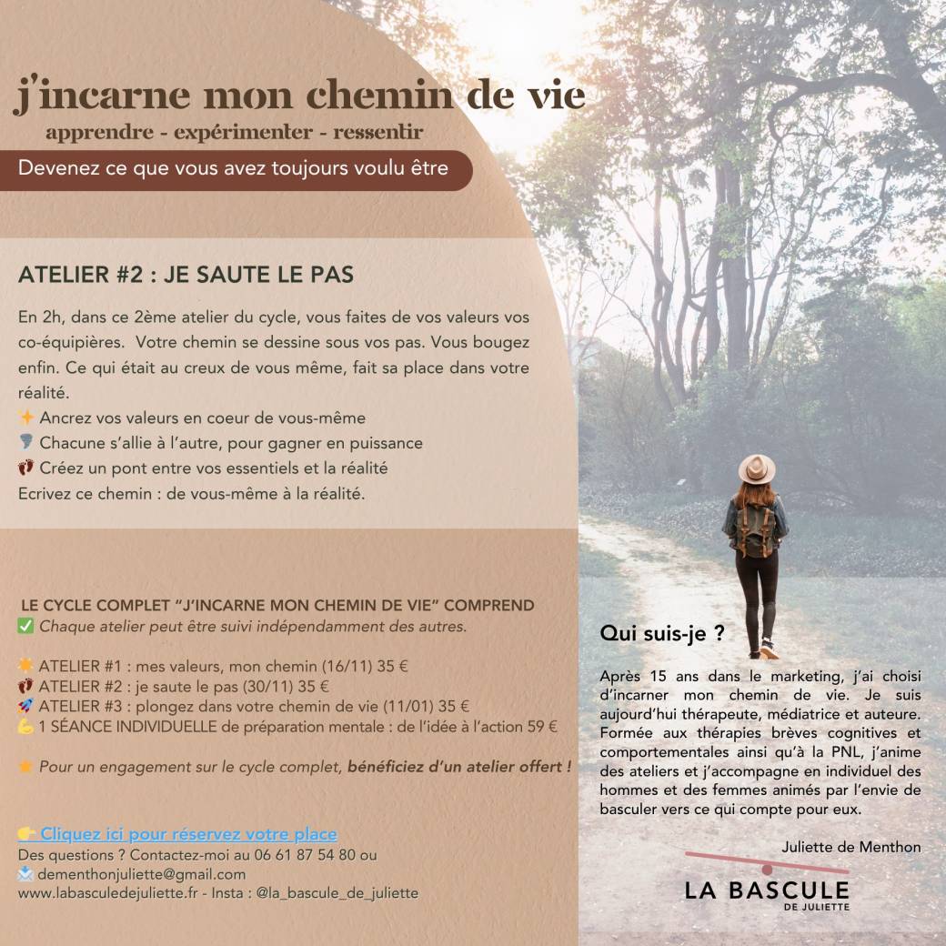 2025-11-30 10:00:002025-11-30 12:00:00Europe/ParisAtelier #2 : J'incarne mon chemin de vie, je saute le pasReservations on : https://www.billetweb.fr/atelier-2-jesautelepas