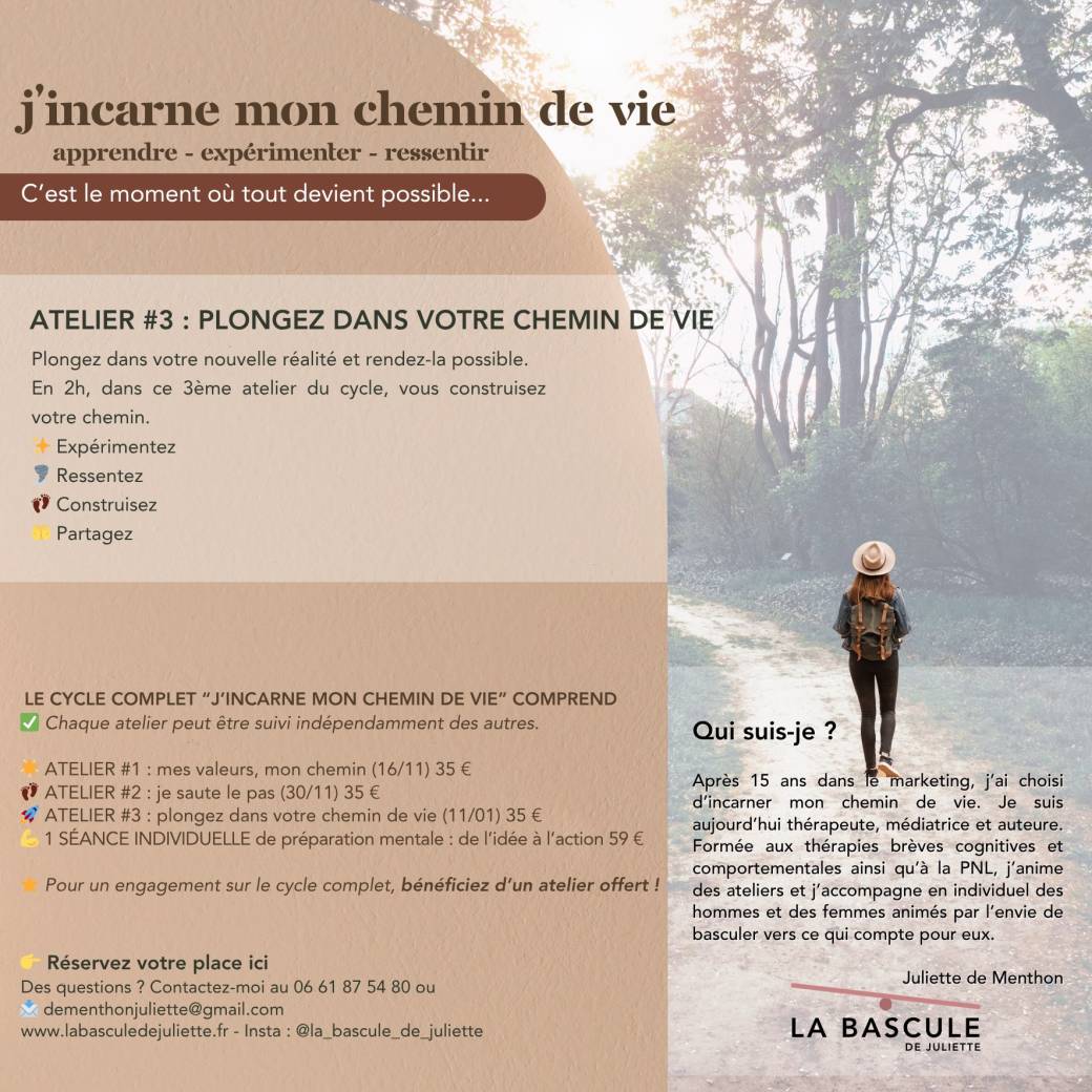 2026-01-11 10:00:002026-01-11 12:00:00Europe/ParisAtelier #3 : Plongez dans votre chemin de vieReservations on : https://www.billetweb.fr/atelier-3-plongez-dans-votre-chemin-de-vie1