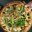 Pizza créative au coulis de tomates jaunes, tomates fraîches, courgettes marinées, stracciatella végétale et pesto de pistache – une explosion de fraîcheur et d’originalité.