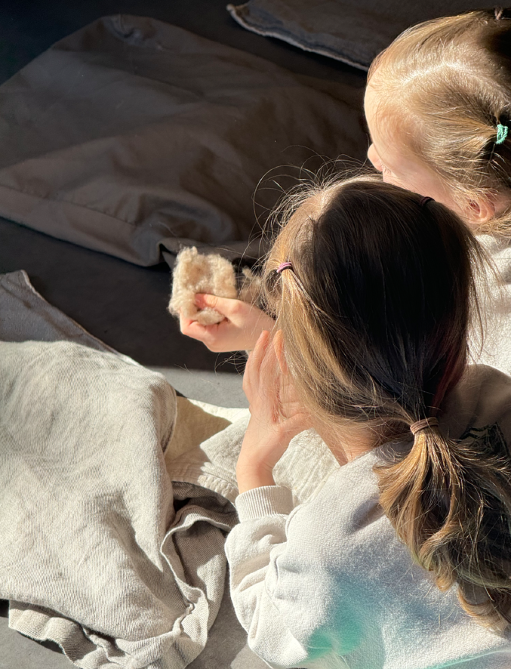 Par quelle étrange et magique métamorphose la laine brute qui sent fort le mouton devient-elle une ravissante pelote de laine toute douce ? Découvrez les différentes étapes du travail de la laine en vous amusant (avec des nouveaux outils à découvrir).