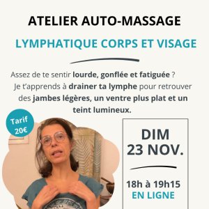 2025-11-23 18:00:002025-11-23 19:15:00Europe/ParisAtelier Auto-Massage en ligne : Spécial drainage lymphatique corps et visageReservations on : https://www.billetweb.fr/atelier-auto-massage-en-ligne-special-drainage-lymphatique-corps-et-visage1