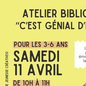 L'atelier bibliocréatif sur le thème "C'est génial d'être petit" est une invitation pour les enfants, pressés de grandir, à voir les avantages d'être petit : sauter dans les flaques d'eau, collectionner les escargots, faire du toboggan, ...