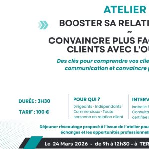 Cet atelier vous propose de découvrir le modèle DISC, outil psychométrique d’analyse des comportements, utilisé par de nombreux professionnels du management et de la relation client, afin de mieux comprendre vos clients, ajuster votre posture relationnelle et fluidifier vos échanges professionnels.