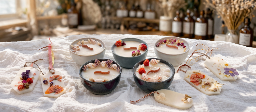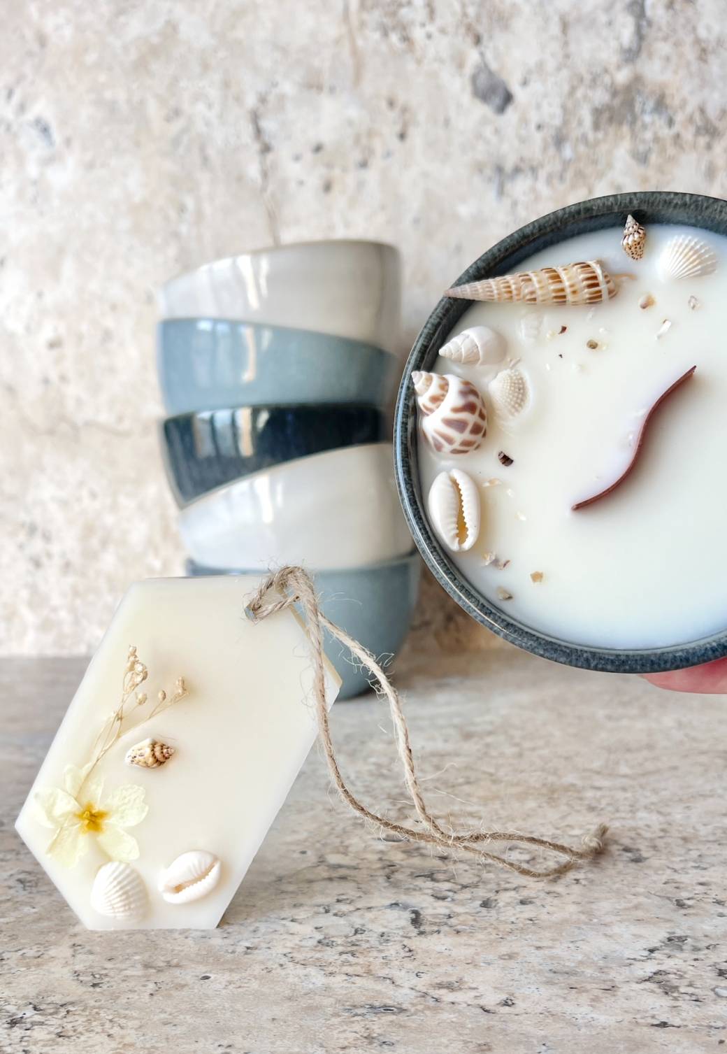 Fabriquez votre bougie & votre suspension parfumée en cire végétale avec une vue incroyable sur le lac et les montagnes.