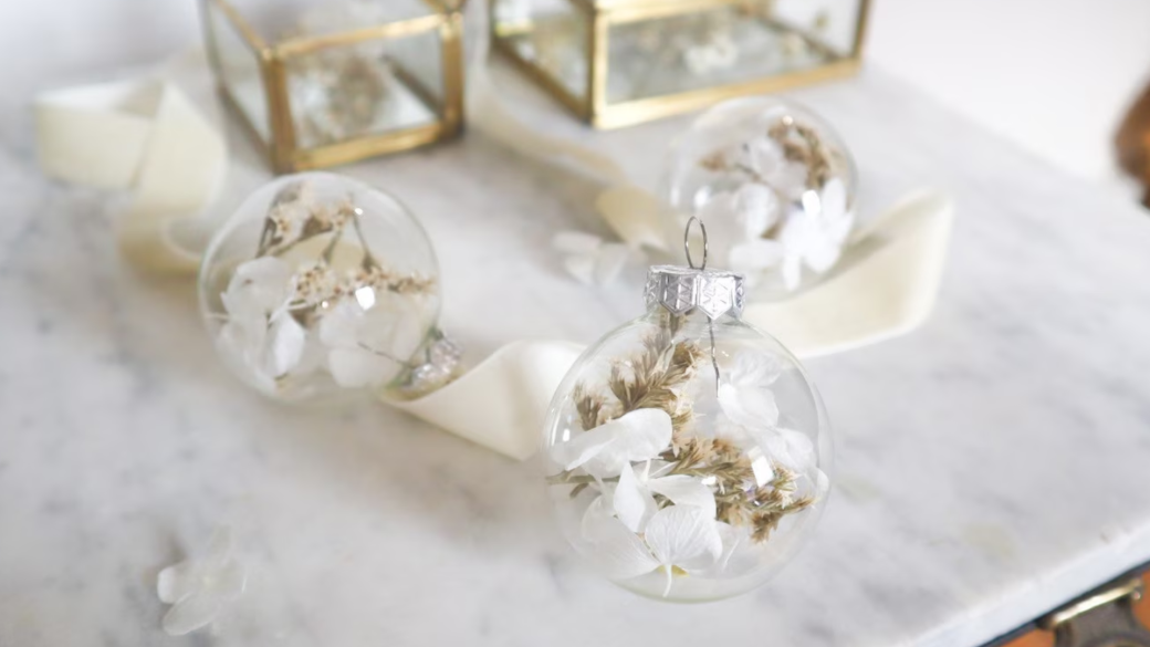 Une boule de noël transparente prête à accueillir votre joli décor personnalisé