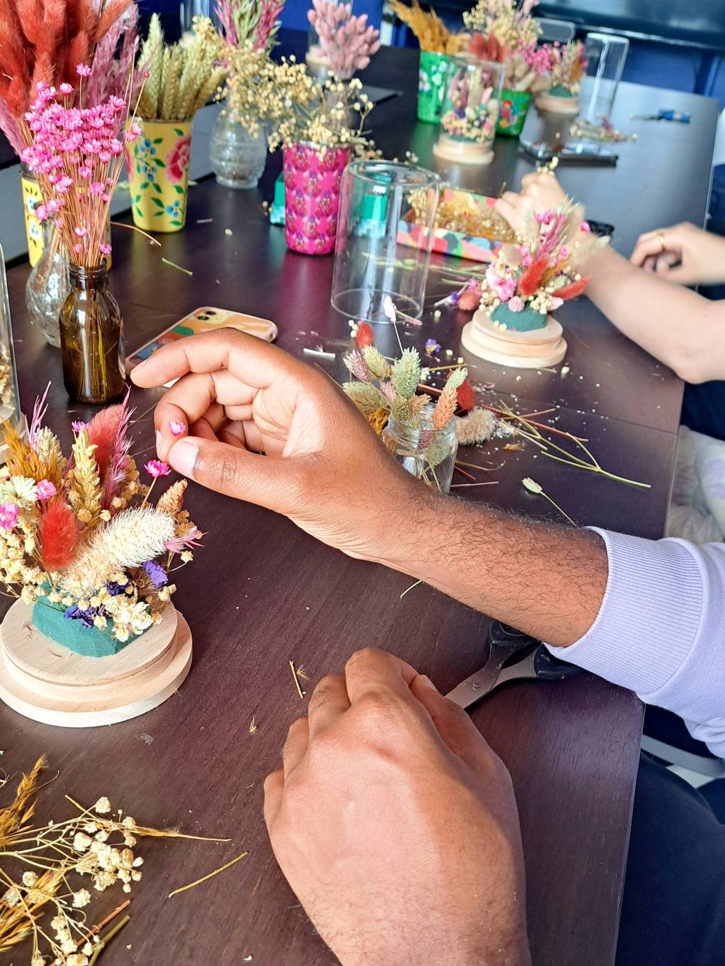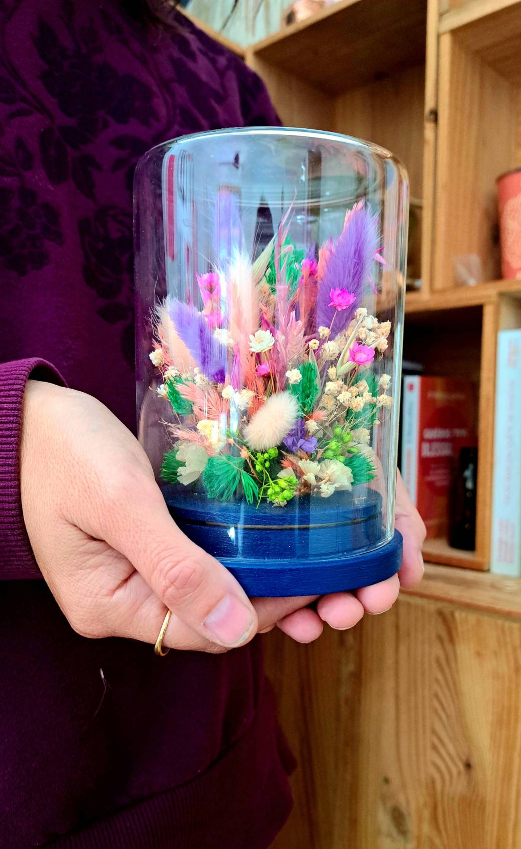 Lors de cet atelier , vous découvrirez toutes les étapes pour créer une cloche de fleurs séchées.