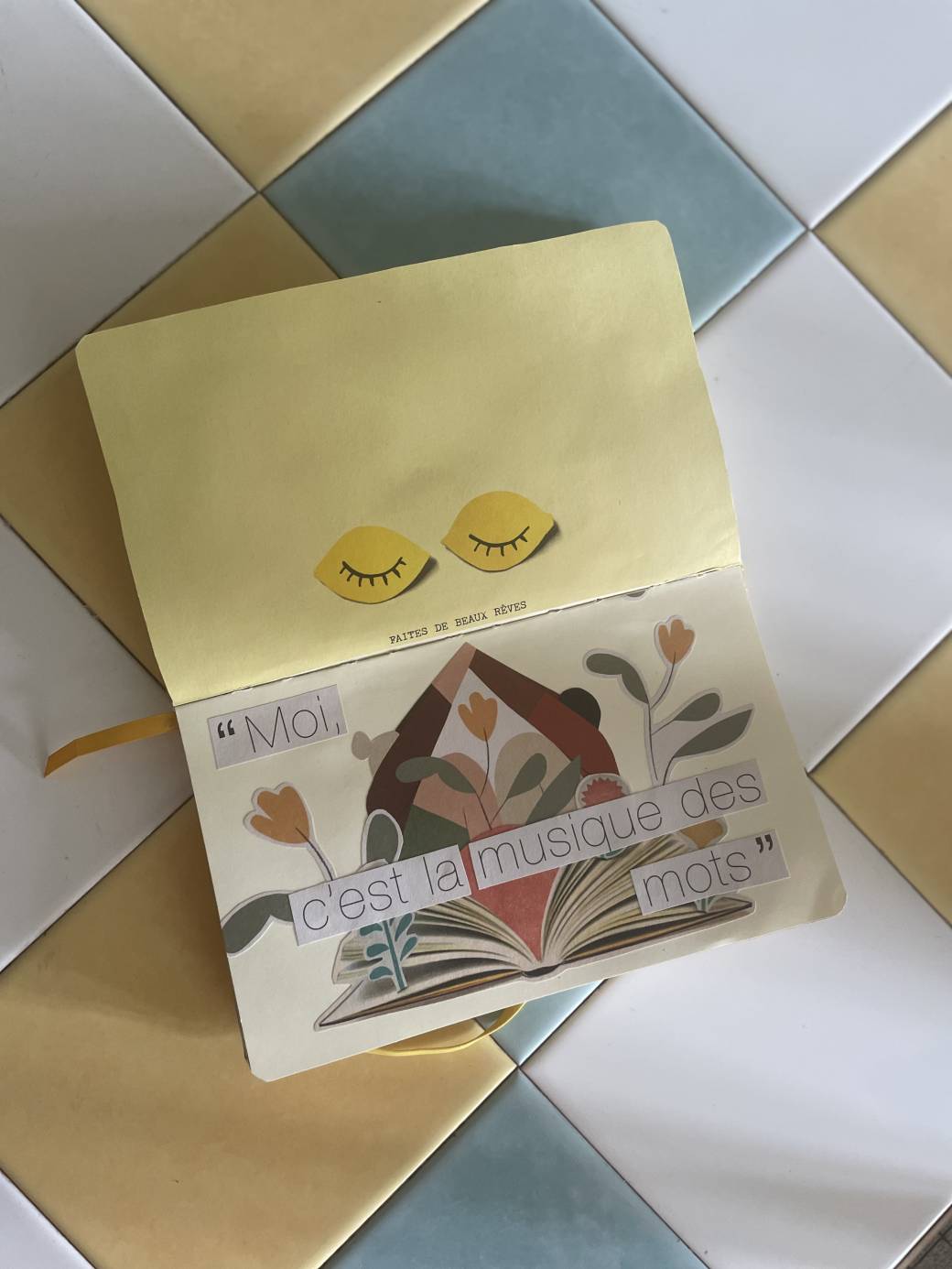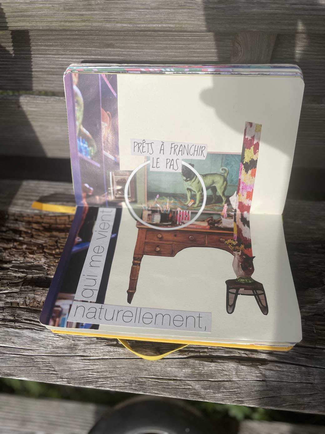 Les images découpées deviennent des tremplins, des portes d’entrée vers les mots. L’association du visuel et de l’écriture libère l’imaginaire et nous autorise à inventer, à oser, à créer des images inattendues.