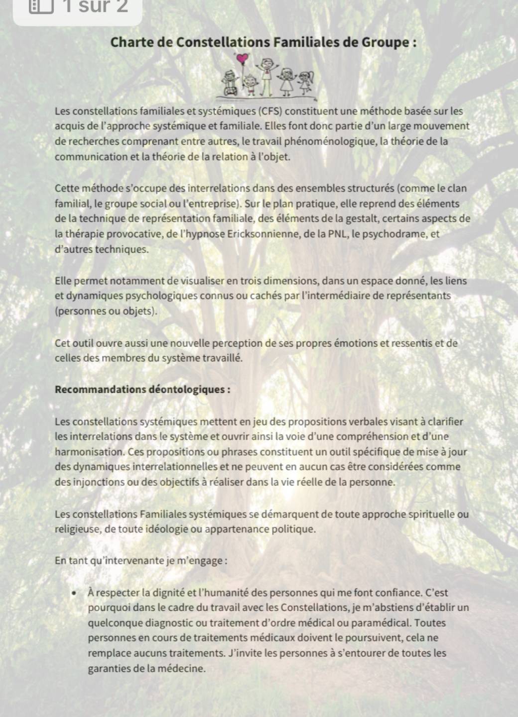 2026-06-13 08:30:00 2026-06-13 18:30:00 Europe/Paris Atelier Constellations Familiales Systémique Groupe Reservations on : https://www.billetweb.fr/atelier-constellations-familiales-systemique-groupe1 --  Repas partagé Je vous propose d’amener chacun·e un plat salé et/ou sucré (sans cuisson, ou réchauffage simple possible) que nous partagerons. Assiettes et couverts sont fournis sur place — inutile d’en apporter. Prévoyez de quoi vous réchauffer type : Châles, couvertures ou plaid, avec le travail des constellations vous pouvez passer de chaud à froid. Prévoyez aussi un tapi de sol. Merci Avec comme toujours de belles rencontrent lumineuses ✨au rendez-vous.   Au plaisir de vous retrouver pour partager cette belle expérience !   3 Allée des Coudriers, Port-Brillet, France Adèle Gaultier EI