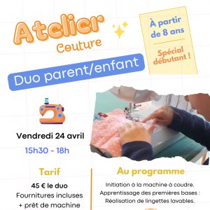 - Atelier limité à 2 duos parent/enfants pour un accompagnement personnalisé.