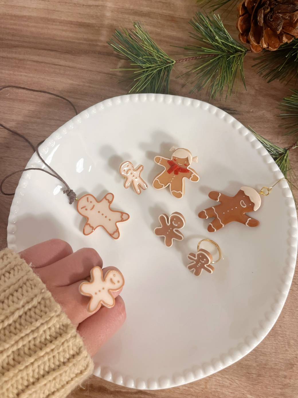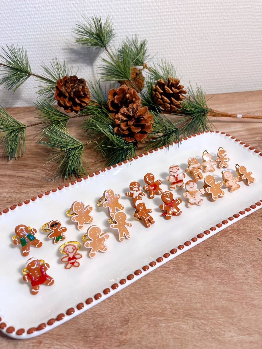 Plongez dans l’ambiance des fêtes en créant vos propres boucles d’oreilles, clips d’oreilles, pendentifs, broches ou bagues en forme de bonhomme en pain d’épices.