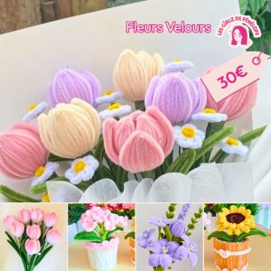 La réalisation guidée de pots en velour ou d'un bouquet de fleurs velours
