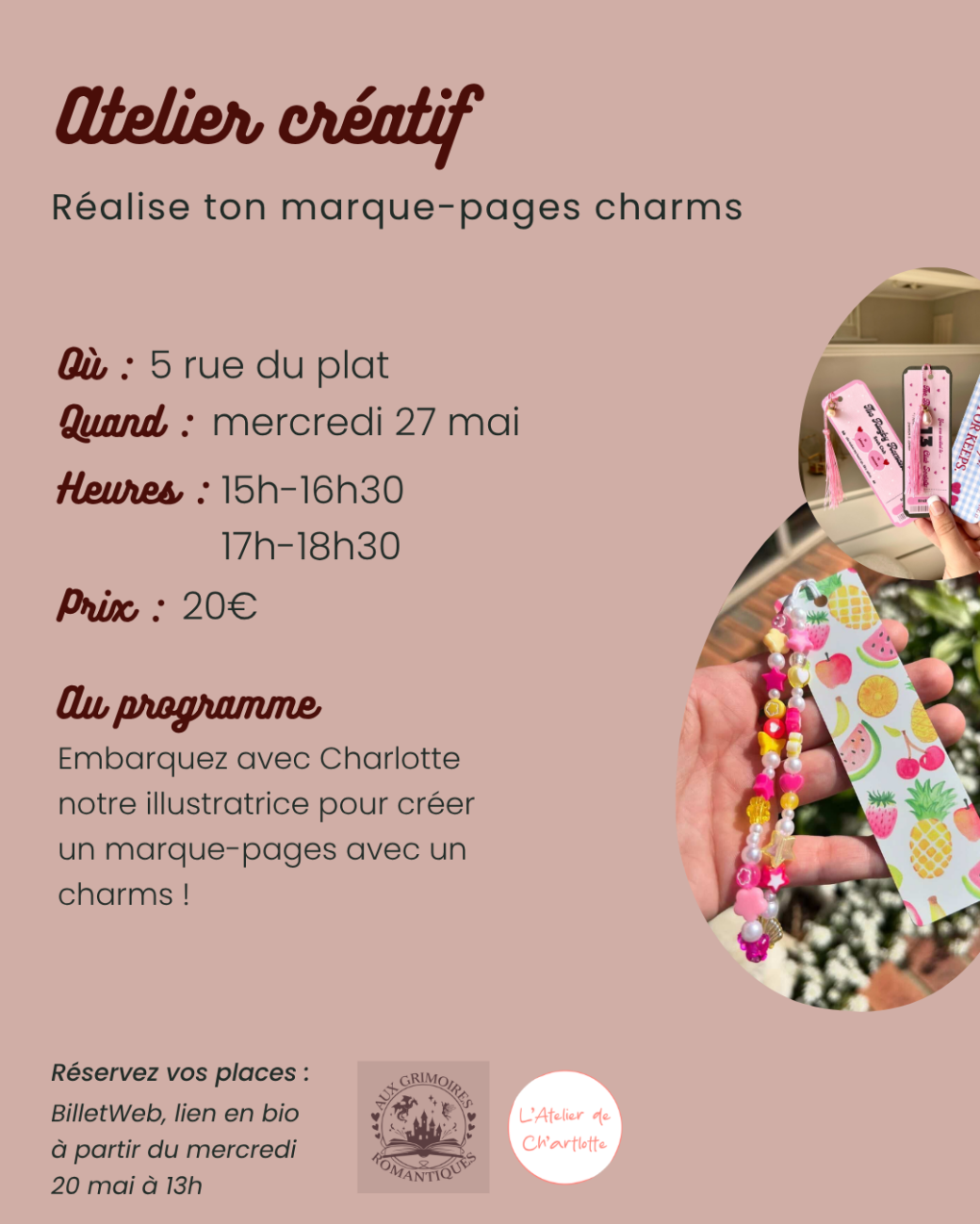 Reservations on : https://www.billetweb.fr/atelier-creatif-marque-page-avec-charms --