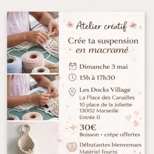 Reservations on : https://www.billetweb.fr/atelier-creatif-suspension-en-macrame --