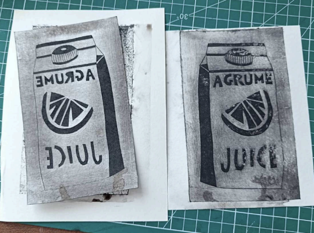 La kitchen gravure (gravure sur Tetrapak) : une alternative plus écologique et accessible, qui permet de transformer de simples briques alimentaires en matrices d’impression.