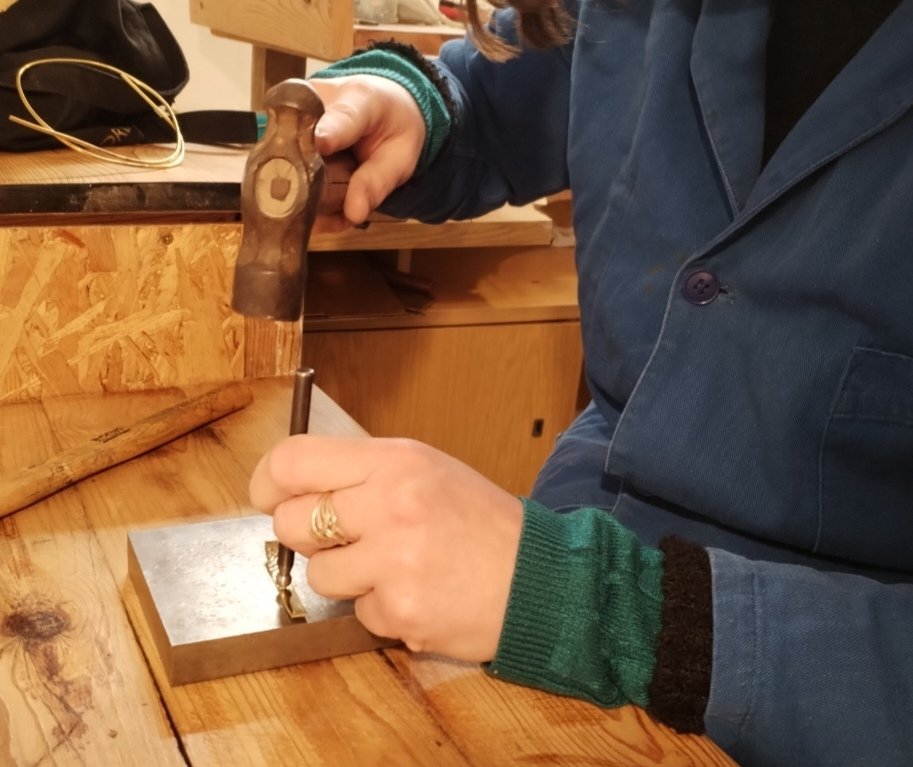 Les participant.e.s pourront s’initier au travail du métal et de ses outils, à travers la création d’une bague en laiton martelée, ouverte, sans soudure. Différentes techniques seront présentées et il sera proposé de choisir parmi trois modèles de bague à fabriquer.