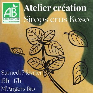 2026-02-07 15:00:00 2026-02-07 17:00:00 Europe/Paris Atelier création de sirops crus Koso  Reservations on : https://www.billetweb.fr/atelier-creation-de-sirops-crus-koso -- Initiez-vous à l’art des sirops crus koso à l'épicerie M'Angers Bio ! Avec Laurène Barrat de la Maison Musa, spécialiste des sirops artisanaux, apprenez à transformer les fruits biologiques de l'épicerie en sirops naturellement fermentés et parfumés. Repartez avec votre création unique, mêlant fruits et sirop d’aromatiques Maison Musa.   Cet atelier est destiné aux adultes. M'Angers Bio - réseau Accord Bio, Rue de Létanduère, Angers, France Maison Musa