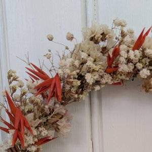 Je vous proposerai de choisir entre la création d'une couronne de fleurs ou d'une guirlande de fleurs séchées, et parmis un large choix de fleurs colorées !