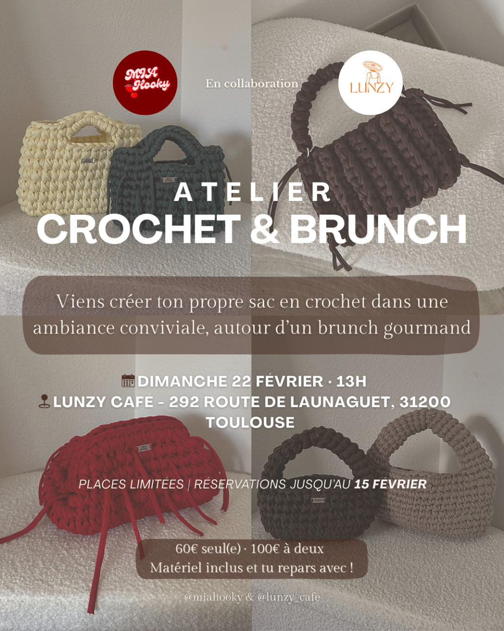 Je t'attends le Dimanche 22 février à 13h pour un atelier crochet accompagné d'un brunch gourmand ☕️