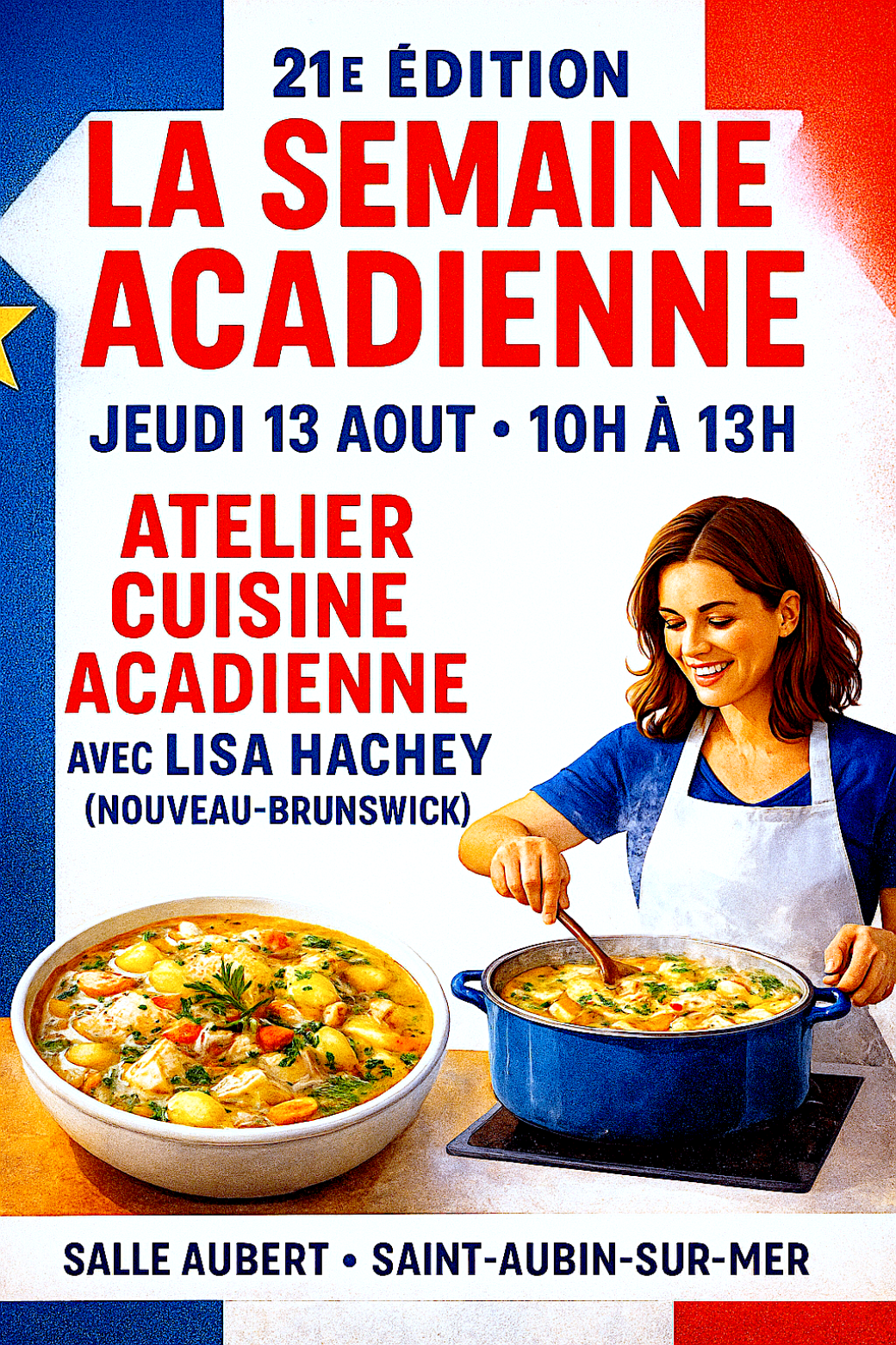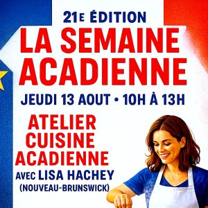 2026-08-13 10:00:002026-08-13 13:00:00Europe/ParisAtelier cuisine acadienne avec Lisa HacheyReservations on : https://www.billetweb.fr/atelier-cuisine-acadienne-avec-lisa-hachey