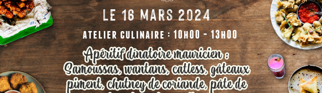 Apéritif dînatoire mauricien: samoussa, wantans, catless, gâteaux piment, chutney de coriande, pâte de piment vert au citron.