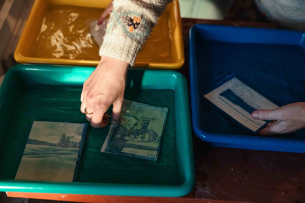 Durant l'atelier, vous allez imbiber des feuilles à votre manière, faire des tests pour trouver le bon temps d'exposition adapté à vos photos et créer 4 oeuvres.