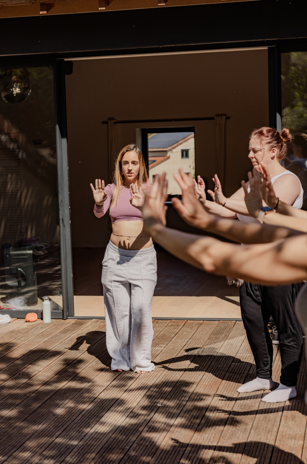 Le cours se déroule sans miroir, pour se laisser guider par les sensations, sans se juger, sans se comparer. Juste soi, la musique, et le mouvement.