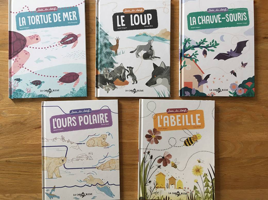 Les enfants se mettent dans la peau d’une éditrice ou d’un éditeur le temps de la création d’une couverture : après avoir découvert les grands principes d’une couverture et d’une charte graphique, ainsi que les spécificités de la collection « Suis du doigt », les enfants sont invités à choisir un animal et à composer leur couverture en dessinant et découpant des éléments.