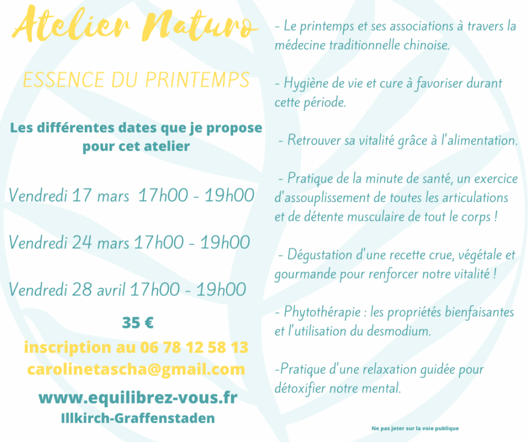 2023-03-24 17:00:002023-03-24 19:00:00Europe/ParisAtelier de naturopathieReservations on : https://www.billetweb.fr/atelier-de-naturopathie