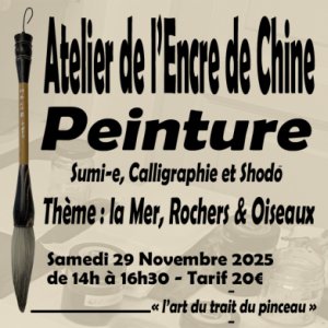 Découvrez les techniques à l'Encre de Chine, maniement du pinceau, créations de motifs...