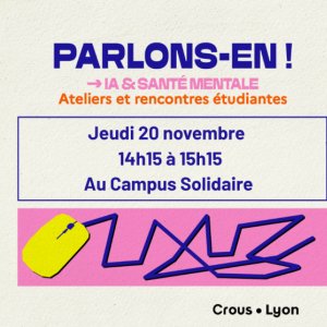 2025-11-20 14:15:002025-11-20 15:15:00Europe/ParisAtelier Déconnexion écransReservations on : https://www.billetweb.fr/atelier-deconnexion-ecrans