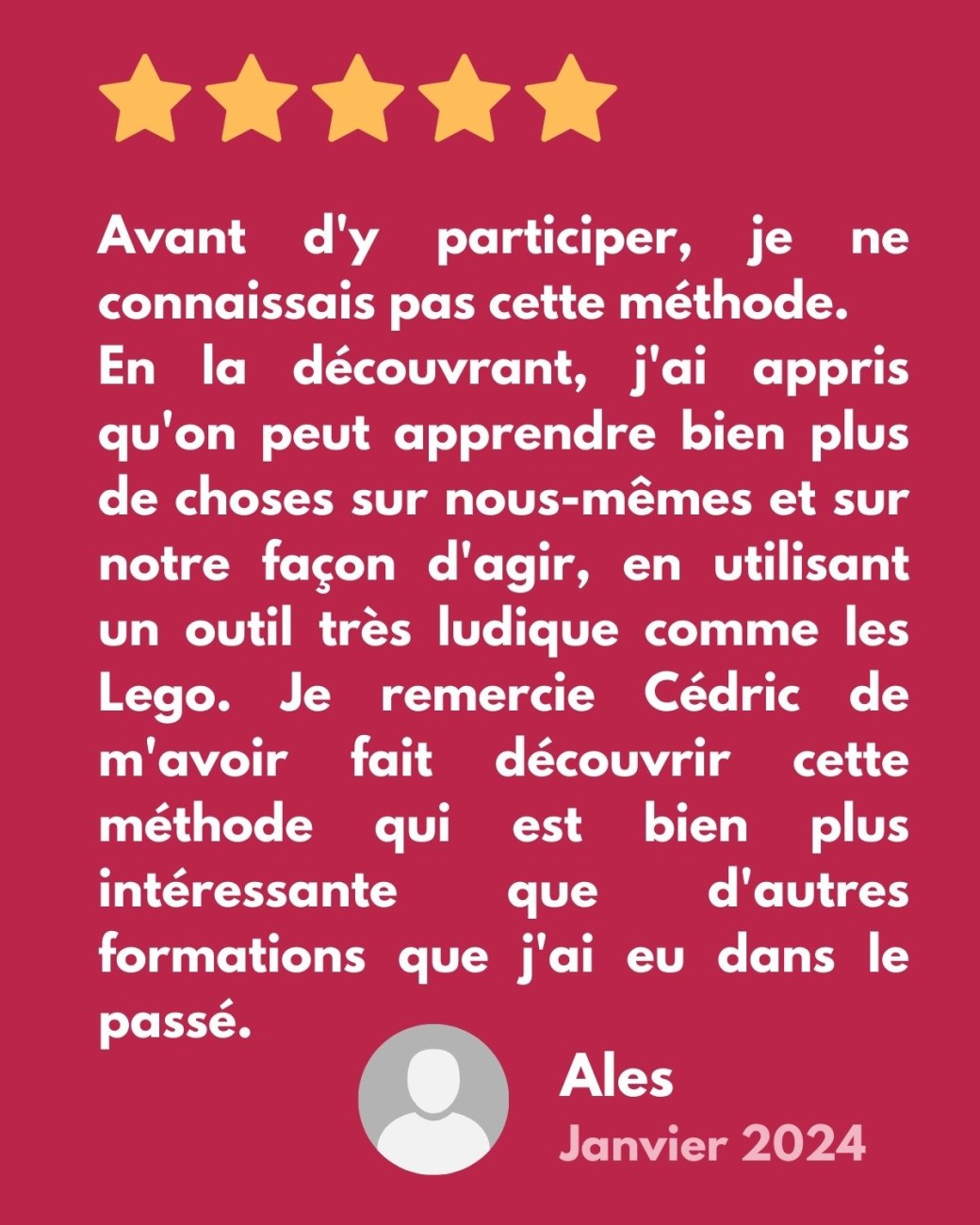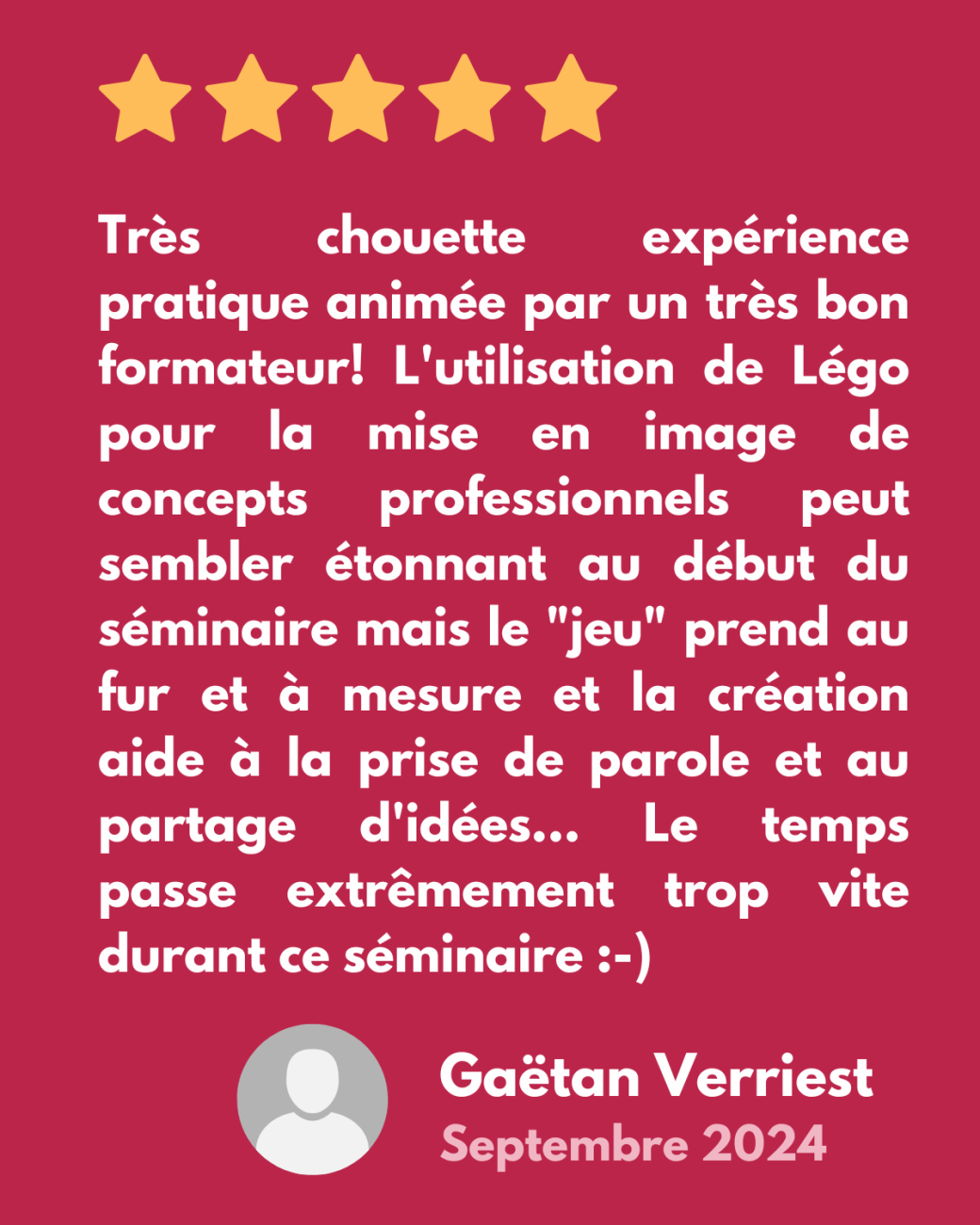 2026-03-19 09:00:00 2026-03-19 09:00:00 Europe/Paris Atelier-Découverte de la méthode LEGO® SERIOUS PLAY® (19/03/2026) Reservations on : https://www.billetweb.fr/atelier-decouverte-de-la-methode-lego-serious-play-19-03-2026 -- Au cours de cet atelier immersif d'une matinée, vous allez découvrir la méthode LEGO® SERIOUS PLAY® en l'expérimentant de facon concrète.   Développé par quelques managers travaillant chez LEGO® dans les années '90,  LEGO® SERIOUS PLAY® a pour objectif d'optimiser la réflexion, améliorer la communication et permettre la résolution de problèmes complexes avec une approche qui favorise l'utilisation d'un language commun, une participation de tous à 100% et la libération du potentiel créatif de chaque personne. Elle est aujourd'hui utilisée par un grand nombre d'entreprises et d'organisations partout dans le monde. Louvain-la-Neuve, Ottignies-Louvain-la-Neuve, Belgique EIGHT Consulting