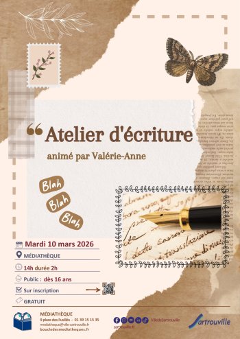 2026-03-10 14:00:002026-03-10 16:00:00Europe/ParisAtelier d'écriture avec Valérie-AnneReservations on : https://www.boucledesmediatheques.fr/Sartrouville