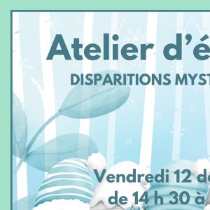 Reservations on : https://www.billetweb.fr/atelier-decriture-disparitions-mysterieuses --