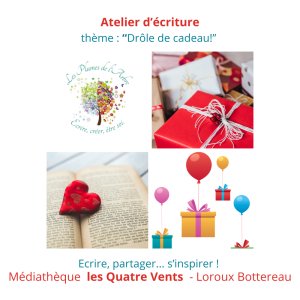 2025-12-03 19:30:002025-12-03 22:00:00Europe/ParisAtelier d'écriture: drôle de cadeauReservations on : https://www.billetweb.fr/atelier-decriture177
