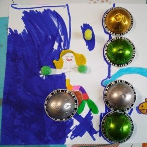 Les enfants imaginent leur fond marin et leurs poissons en utilisant des capsules de café.