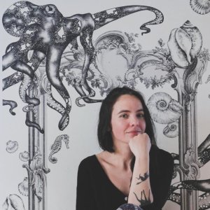 Avant de se consacrer au dessin, Coline Colline (de son vrai nom Coline Zellal) a travaillé plusieurs années dans le domaine du patrimoine, en tant que conservatrice. Au cours de ses études en histoire de l’art, à l’Ecole Normale Supérieure de Lyon puis à l’Ecole du Louvre, ses recherches ont porté principalement sur l’histoire de la parfumerie, puis sur celle des jardins. Conservatrice au Musée national Picasso à Paris, puis au Mucem à Marseille, elle a travaillé à la valorisation de collections graphiques puis textiles – des matériaux fragiles, qui ont nourri son goût pour les arts du papier. Aujourd’hui, ses créations se retrouvent à la croisée de ces différentes voies. Fonds d’archives, collections patrimoniales et bases de données historiques, sont les sources premières des œuvres de Coline Colline. Ses motifs favoris sont inspirés de la nature et font écho à différents domaines de l’histoire de l’art : le dessin naturaliste et animalier, l’herbier et la planche botanique, les répertoires ornementaux inspirés de la faune et de la flore, l’estampe japonaise.