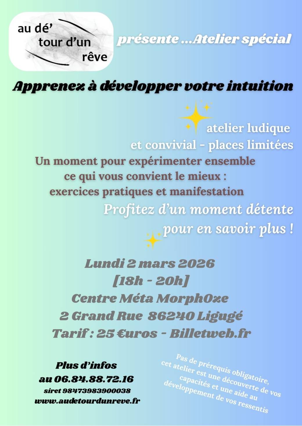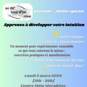 Reservations on : https://www.billetweb.fr/atelier-developpez-votre-intuition18h --