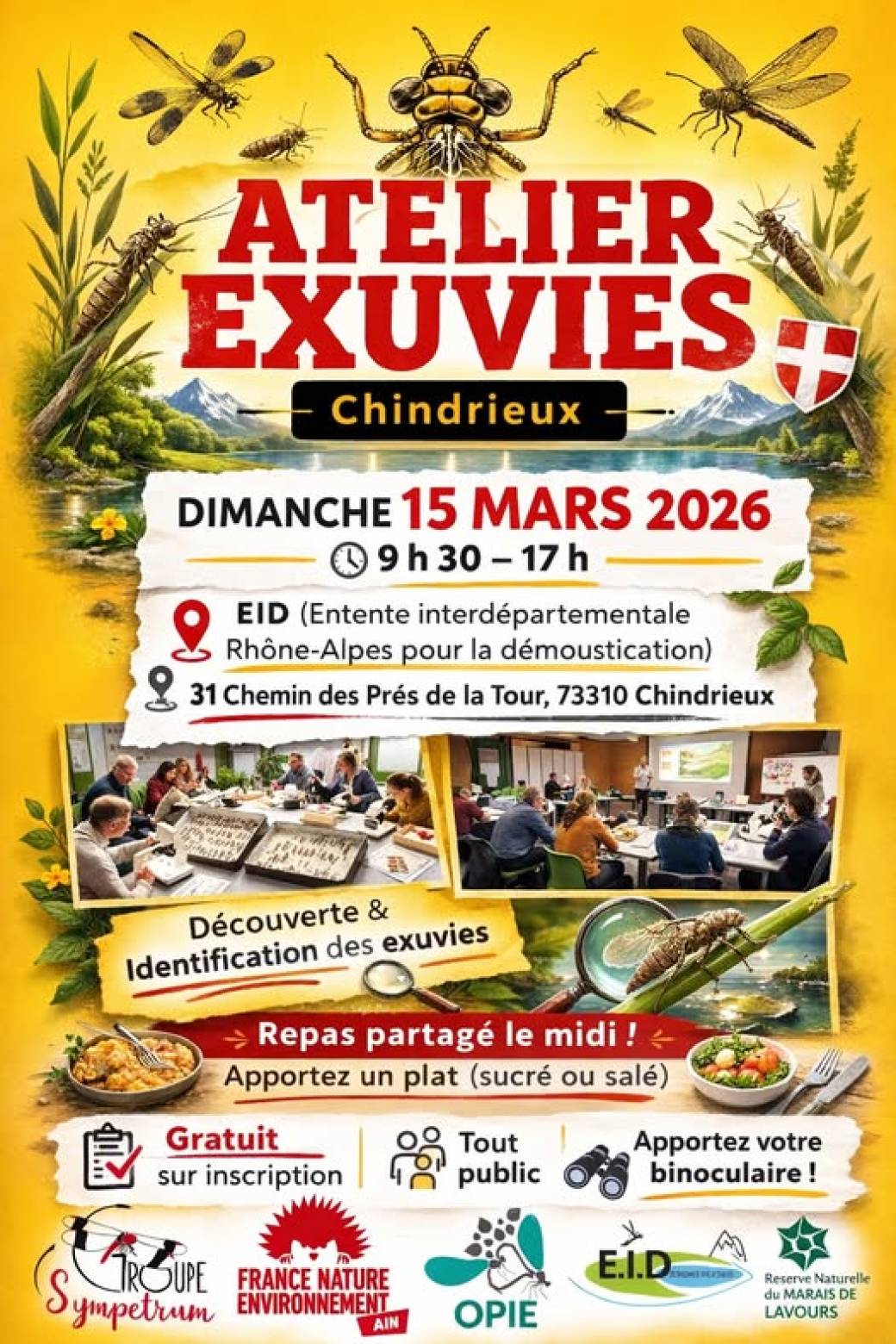 Les libellules vous intéressent ? FNE Ain, le Groupe Sympetrum et et la Réserve Naturelle Nationale du Marais de Lavours vous proposent un deuxième atelier d’identification des exuvies, le dimanche 15 mars 2026 à Chindrieux (73).