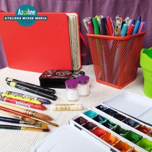 Ces techniques “mixtes” seront ludiques avec un savant mélange d’aquarelle, de collage, de scrap et d’écriture.