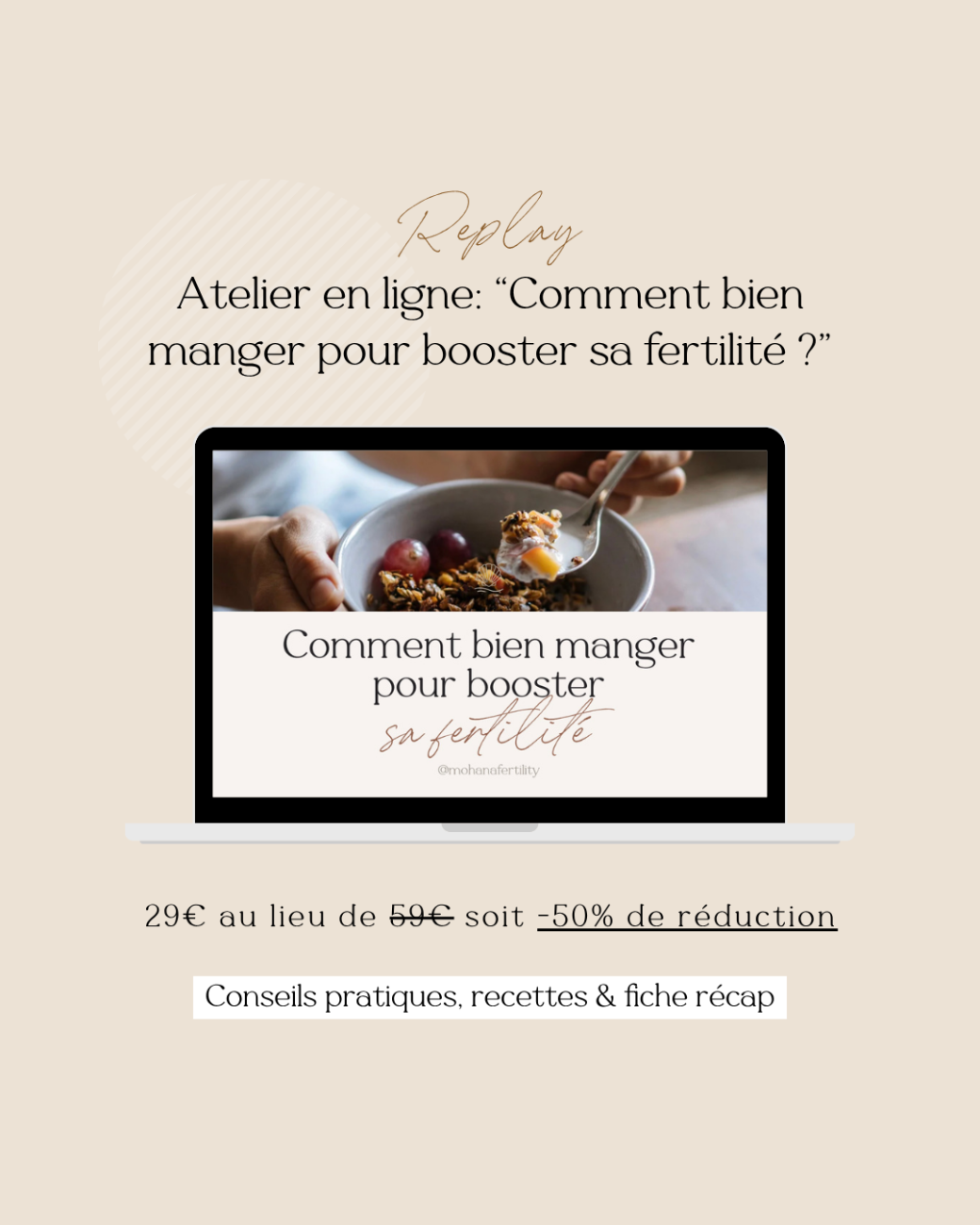- Inclus : accès au replay + fiche récap + recettes de saison