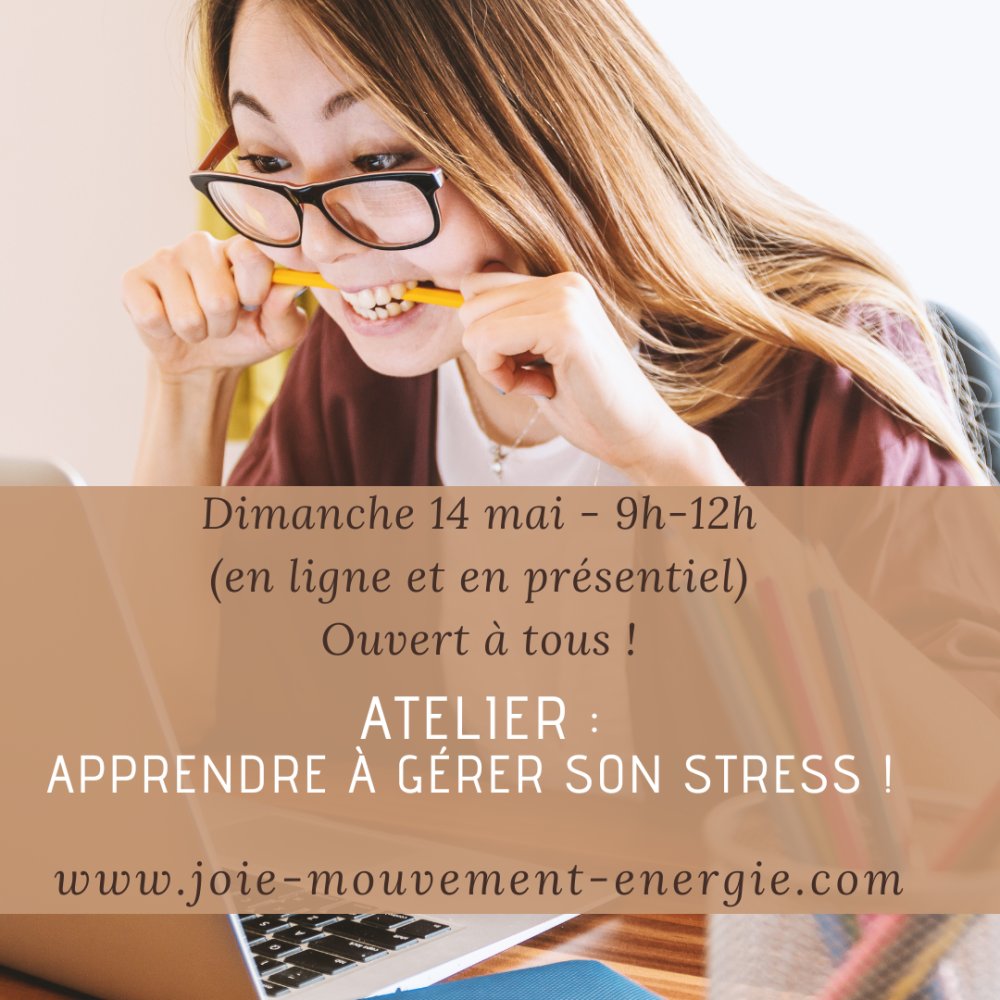 2022-02-26 10:00:00 2023-02-04 14:00:00 Europe/Paris ATELIER énergie & bien-être Reservations on : https://www.billetweb.fr/atelier-energetique-bien-etre -- Ateliers - conférences pratiques sur des sujets liés à l'énergétique et au bien-être. (9h-12h En ligne & 14-17h en présentiel à Haims, Vienne.)   L'objectif de ces ateliers est d'avoir des notions de base et des clés pratiques en fonction des sujets abordés, pour se sentir mieux dans sa vie !  Apprendre à gérer son stress !   * Le stress - c’est quoi ? Apprendre à le reconnaître. * Est-il utile ou est-ce un fléau ? * Ses différents effets concrets sur le corps & plus  * Comment faire concrètement pour mieux le gérer et ne plus se laisser polluer ?  trucs, astuces, attitude ….   NOUVEAUTE - Cet atelier sera donné en hybride présentiel et en ligne dans la région "Sud-Vienne".   Restez-informés sur www.joie-mouvement-energie.com 86310 Haims, France ou en ligne ! Nadine Chadefaux