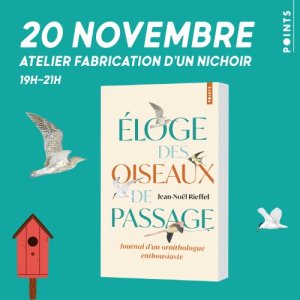 Pour fêter la sortie poche de "Eloge des oiseaux de passage" de Jean-Noël Rieffel, participez à un atelier fabrication d'un nichoir !