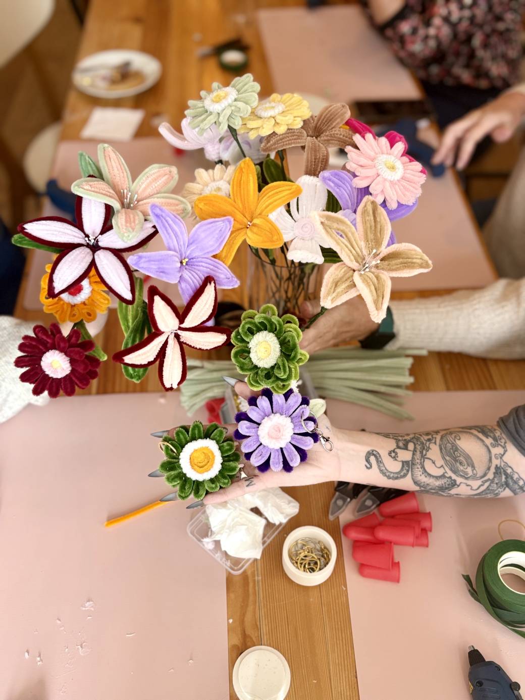 Viens apprendre à créer des fleurs en fil chenille. Pendant 2h, tu pourras créer, des fleurs sur tige, des fleurs à poser ou encore des portes clés (2). Tu repars avec tes créations !