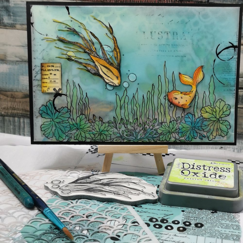 Nous travaillons avec des encres distress (Ink et Oxide) et des néocolor 2 mais pour les personnes en ligne vous pourrez le réaliser avec les couleurs que vous avez.