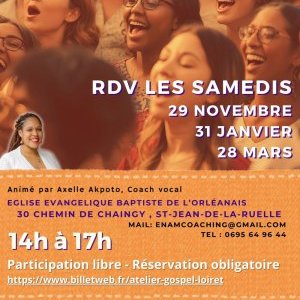 2025-11-29 14:00:002026-03-28 17:00:00Europe/ParisATELIER CHANT GOSPEL POUR TOUSReservations on : https://www.billetweb.fr/atelier-gospel-loiret