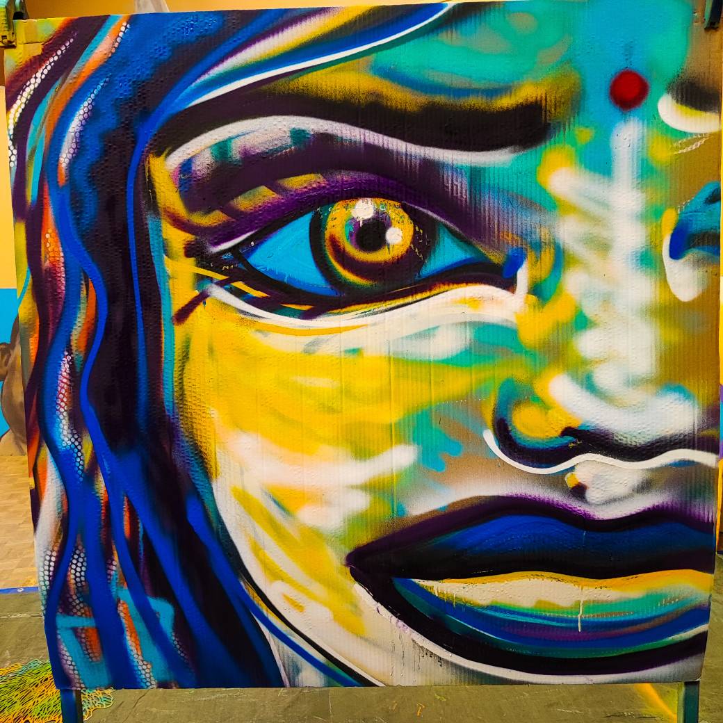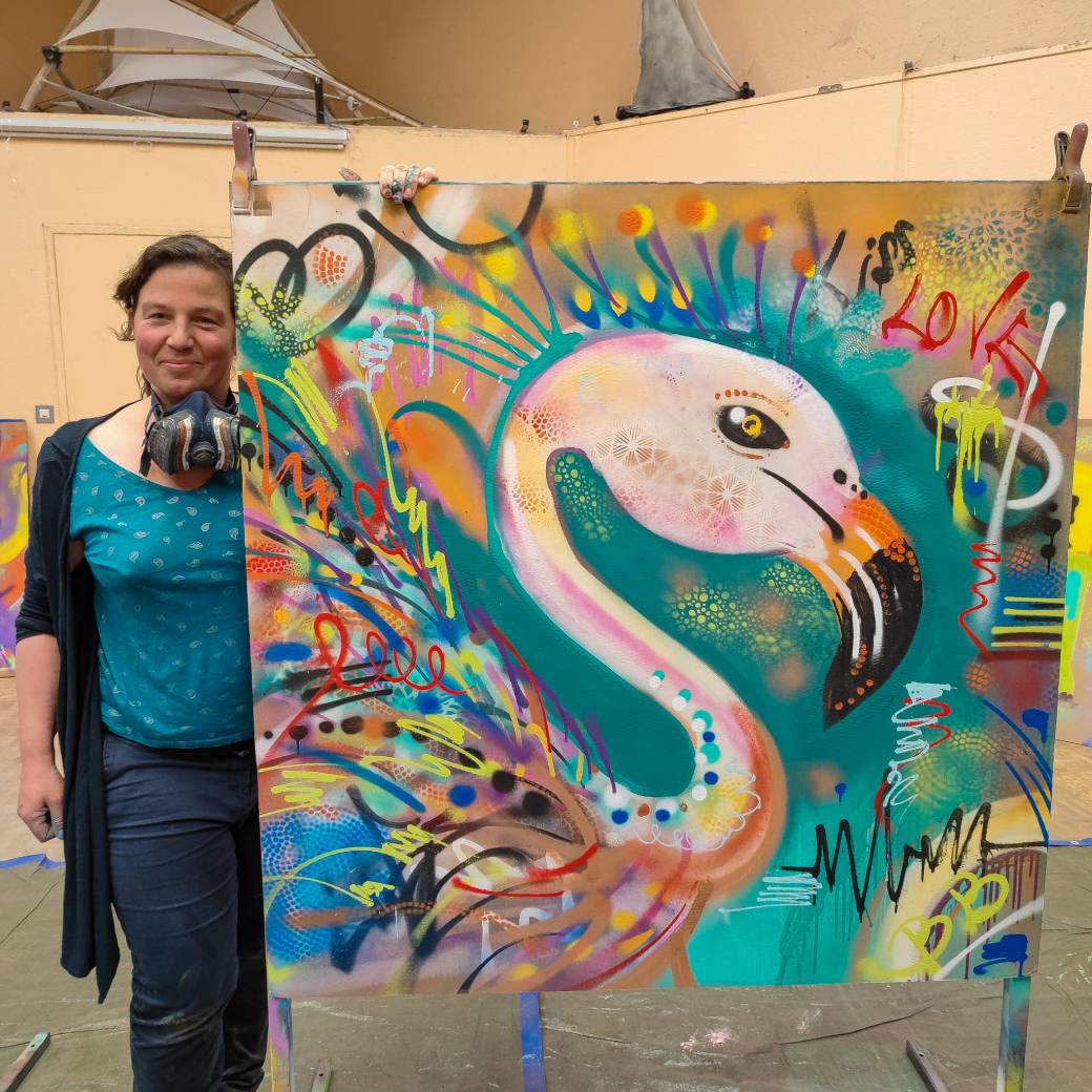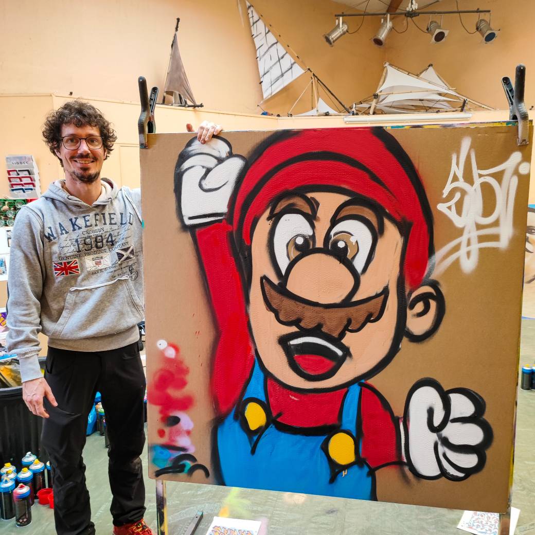 Tout le matériel est fourni (peintures aérosol, masque à cartouche de protection et support de 120 x 120 cm).
