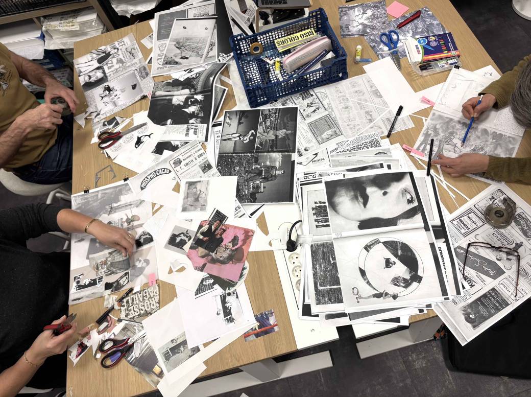 Vous êtes invité·e·s à apporter des photos, des souvenirs et des découpages de chez vous afin de les intégrer à votre œuvre.