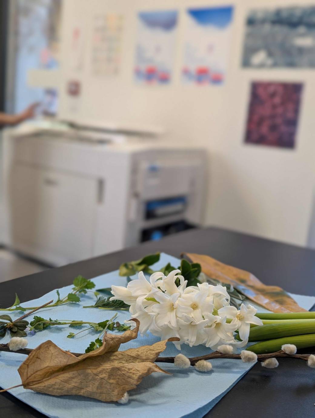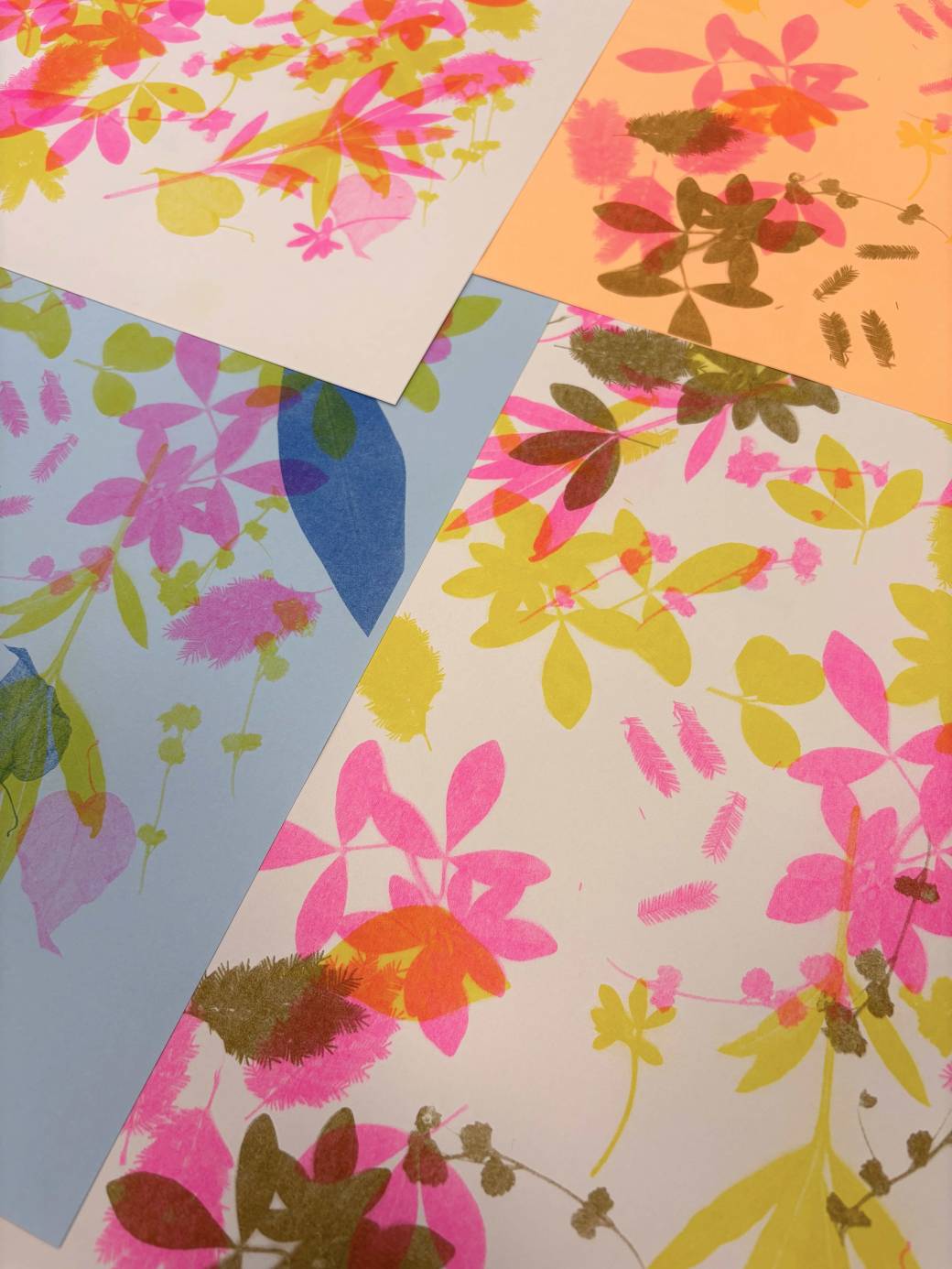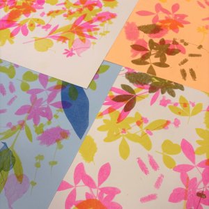 Nous y célébrons le printemps et la nature, en cherchant à intégrer au maximum la cueillette, les fleurs et les feuilles de saison dans nos créations en risographie !